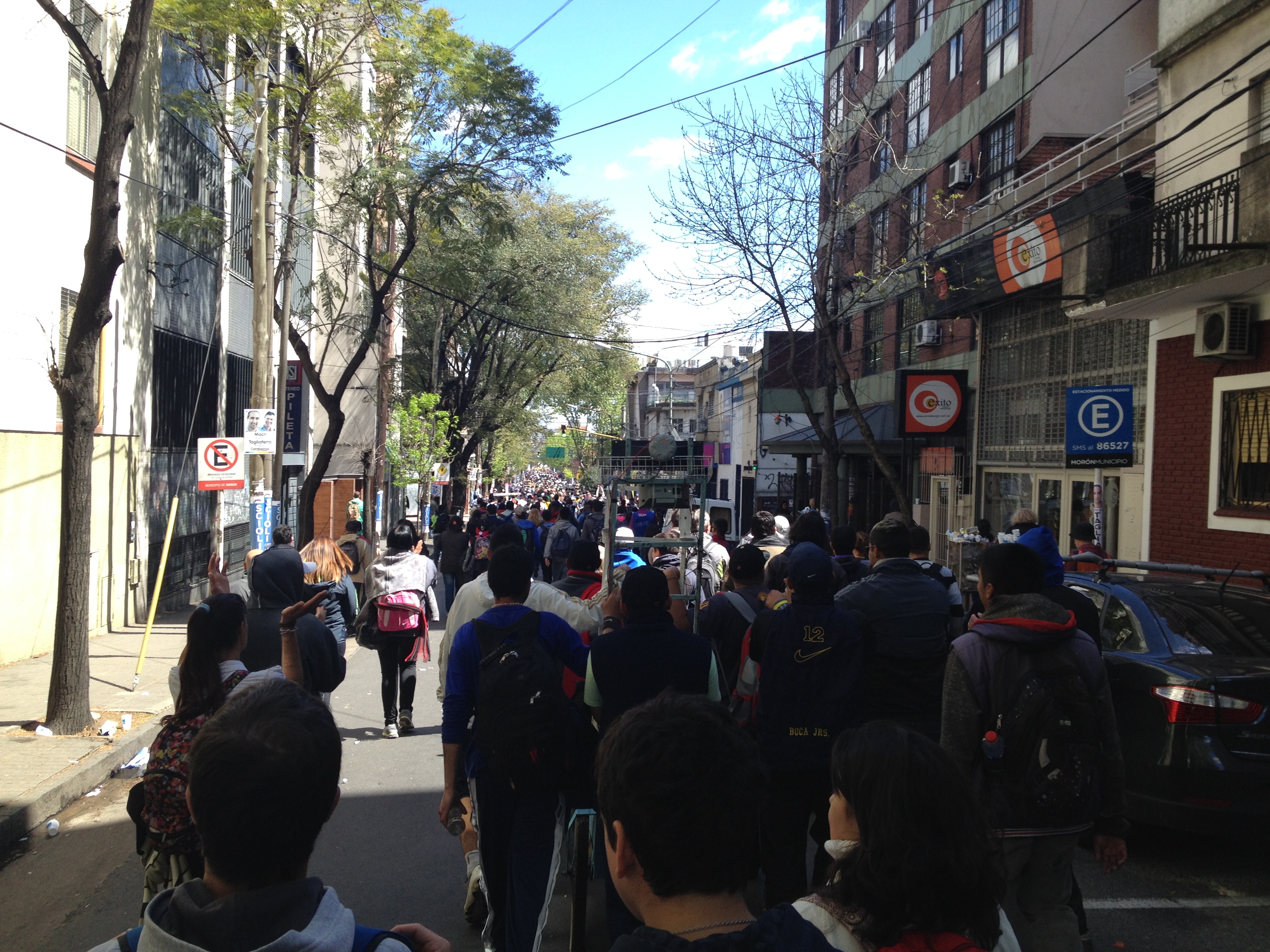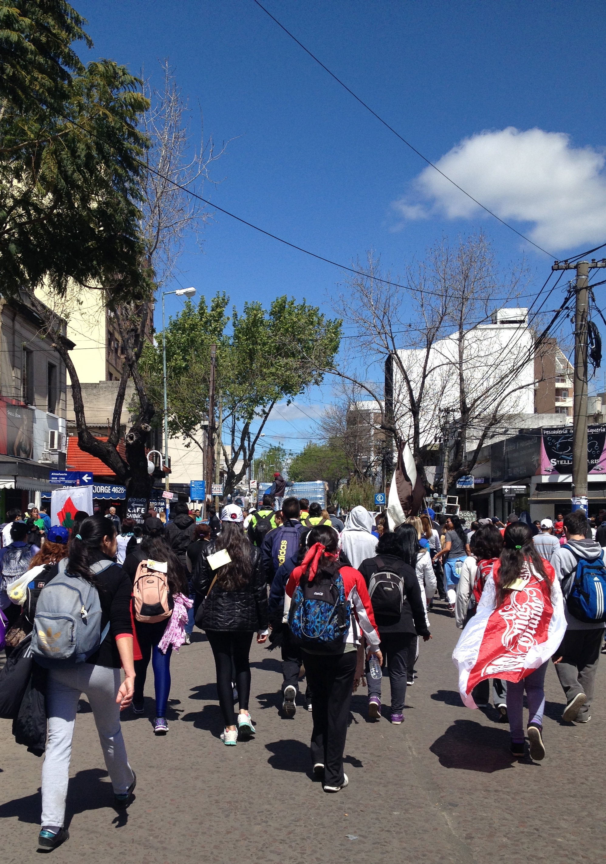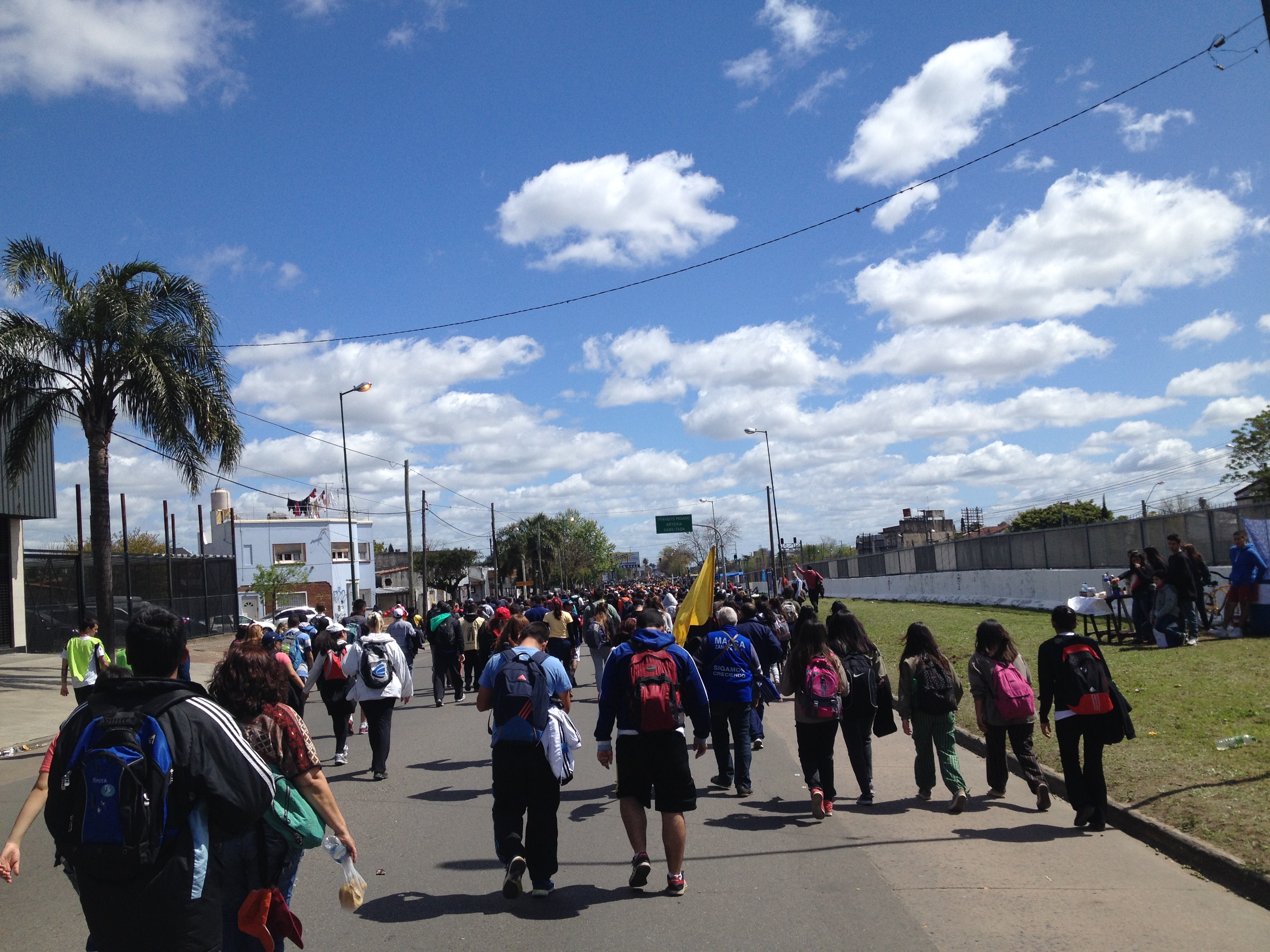 Diese mehreren Tausend, sind tatsächlich mehrere Tausend. Im Jahr 2013, Papst Francisco sei Dank, waren es sogar 2,5 Millionen Pilger. Ja, 2,5 Millionen. Etwas mehr als ein Drittel der Bevölkerung der Schweiz, um es anders auszudrücken. Wie jedes Jahr seit 1975, findet die Pilgerung an einem Samstag anfangs Oktober statt. Wir starten morgens um 10 Uhr wie die meisten anderen Pilger auch in Liniers, einem Viertel der Hauptstadt Buenos Aires. Von dem Moment an, an dem wir eintauchen in die Menschenmenge und zu laufen beginnen, sind wir ein Teil von diesem Strom der fliesst, unaufhaltsam wie ein Fluss, ständig in Bewegung… in Richtung Luján. In der etwa 60 Kilometer von Buenos Aires entfernten Stadt, befindet sich die der Schutzpatronin Argentiniens gewidmete Basilica de Nuestra Señora de Luján – das Ziel der Pilger.